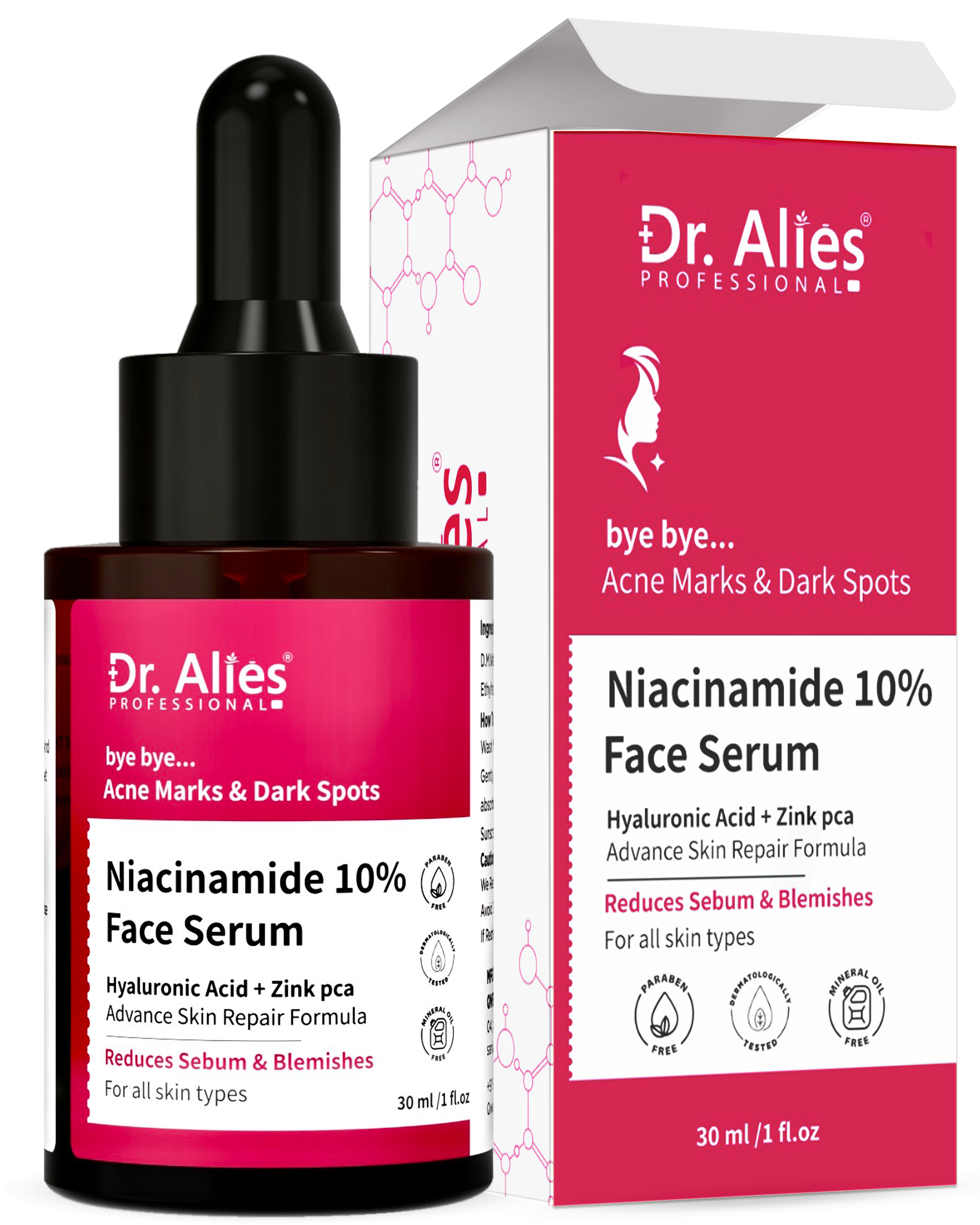 Dr. Alies Professional 10% Niacinamide Face Serum with Zinc & Hyaluronic Acid is an advanced skincare formula designed to address multiple skin concerns effectively. Niacinamide, also known as Vitamin B3, is the star ingredient, renowned for its versatile benefits in skincare. Combined with Zinc and Hyaluronic Acid, this serum offers comprehensive care for various skin types, including sensitive skin.